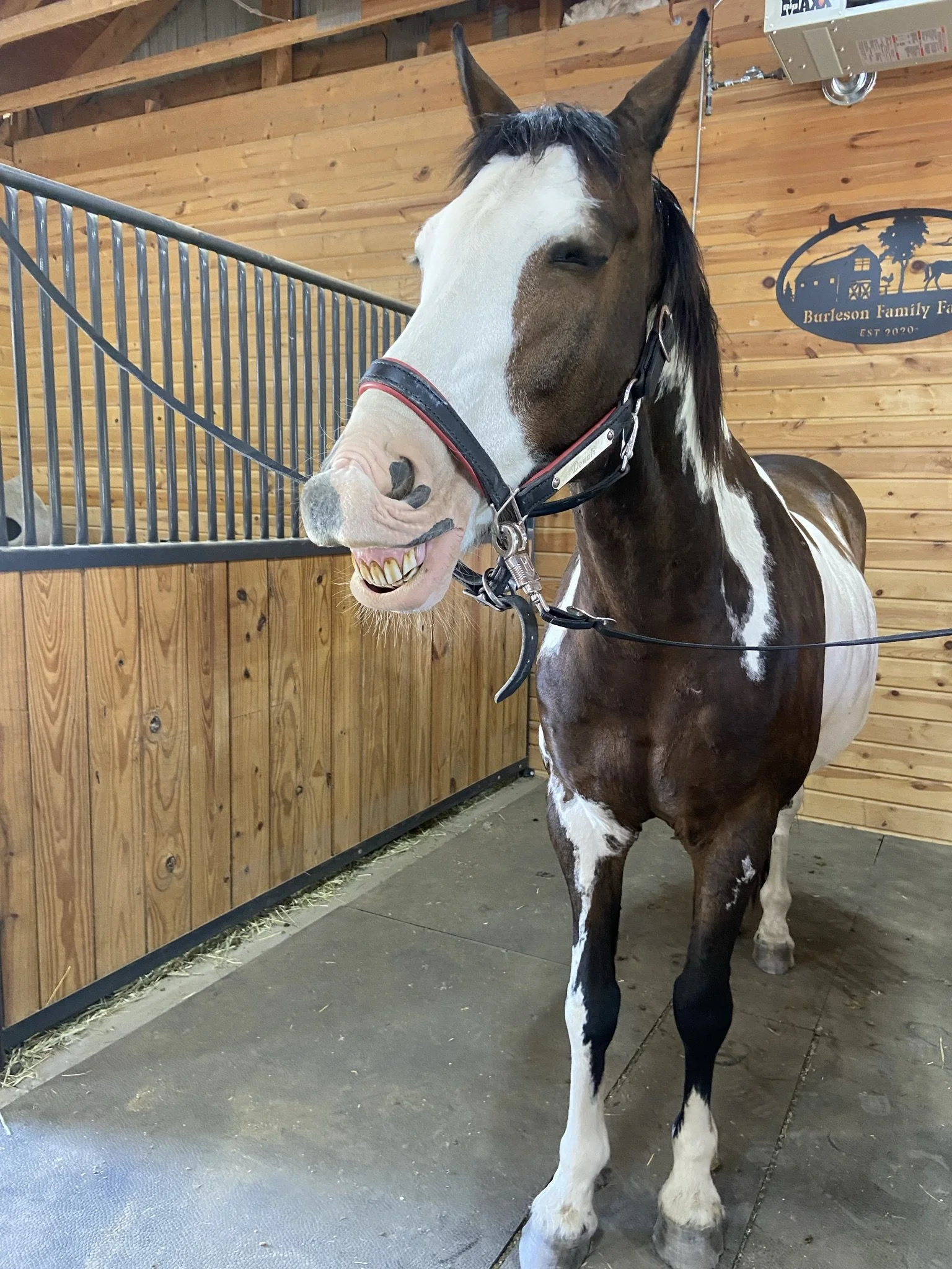 Cruz is a 17-year-old retired thoroughbred and draft mix with a heart of gold. With a rich history as a cowboy ranch horse and lesson horse for kids, he has brought joy and confidence to countless individuals.